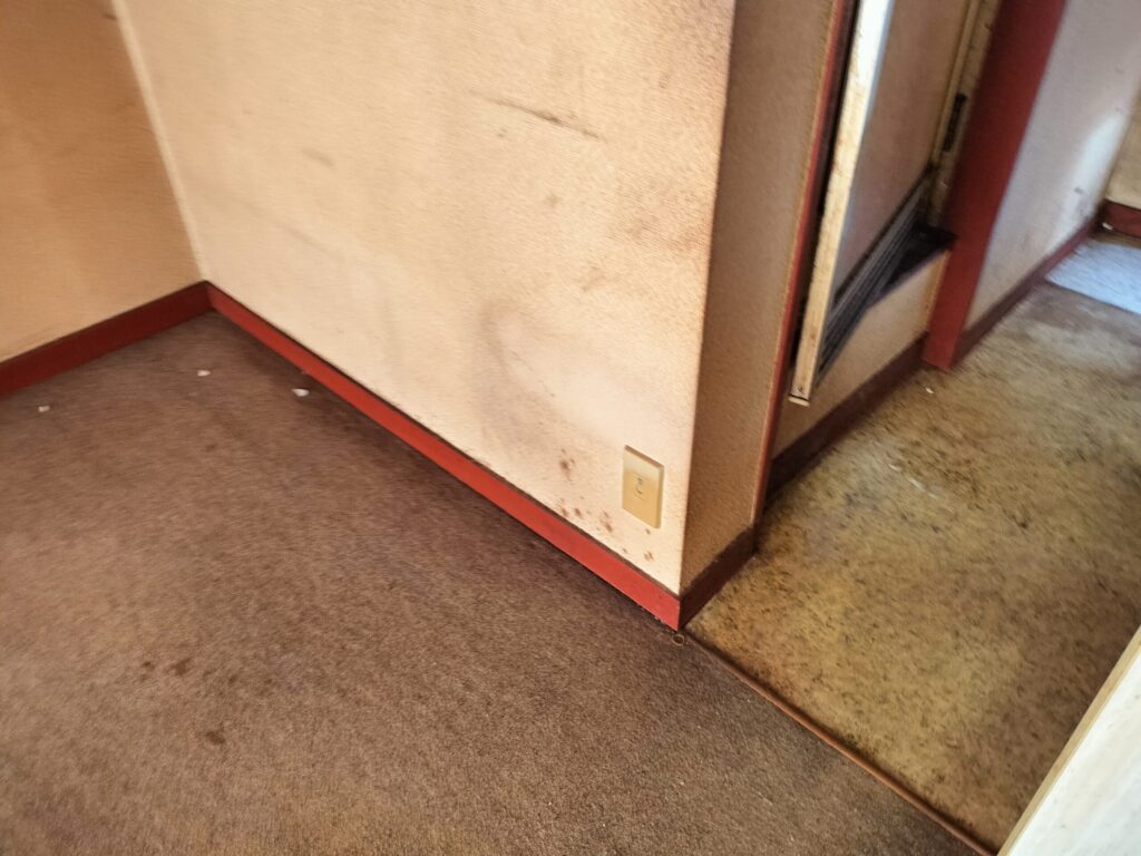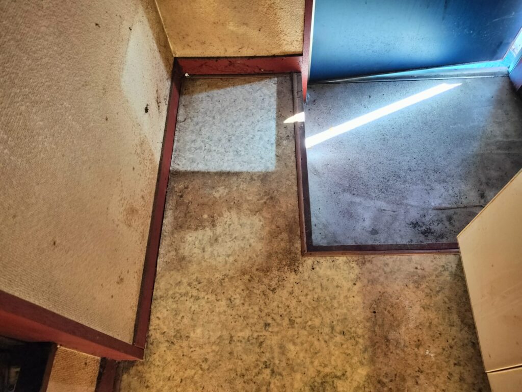 床はカーペット仕様となっており、全体的に汚れや劣化が進んでいるため、